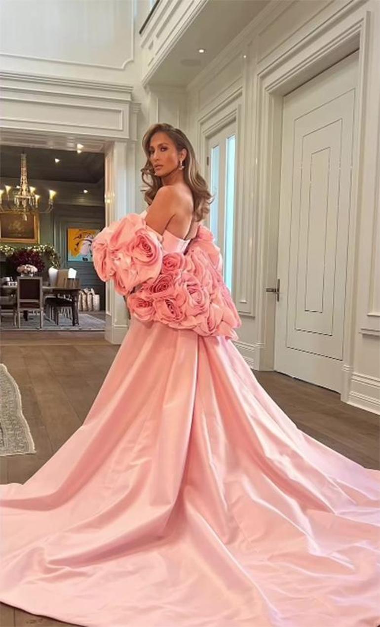 Lopez’in aynı renk güllerle süslü pembe elbiseni göstermek için paylaştığı bu pozla ilgili başka bir ayrıntı daha vardı.