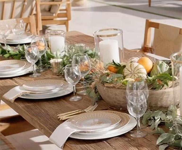 Bu masadaki salata tabaklarının tanesinin 200, yemek tabaklarının tanesinin de 500 dolardan satıldığını not düşelim.