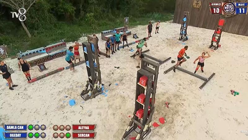 Dokunulmazlık karşılaşmasının ikinci etabında ise bu kez takımlar bayrak yarışında karşı karşıya geldi. 12 olanın dokunulmazlığın sahibi olacağı oyunun final etabında kırmızı takımdan Sercan-Aleyna, mavi takımdan Damla Can-Ogeday mücadelesi kazananı belirledi. Son sayıyı Damla Can’ın almasıyla dokunulmazlıkta bayrak yarışını mavi takım 12-10 skorla kazandı. Böylece mavi takım dokunulmazlık ve ödülün sahibi oldu.