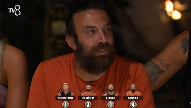 Büyük finale adım adım yaklaşan Survivor All Star’da dokunulmazlık karşılaşmaları dün gece de devam etti. Dokunulmazlık oyununu kaybeden kırmızı takımda konsey toplandı. Yarışmacılar ilk olarak adadan gitmesini istedikleri isimler için oylarını verdi. Yapılan oylama sonucu Yunus Emre 1 oy, Hilmicem 3 oy, Atakan 1 oy, Sercan 4 oy aldı. Böylece Survivor’da 2. eleme adayı Sercan olarak belirlendi.
