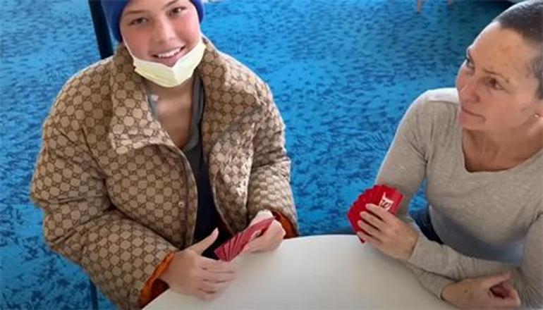 Isabella hastanedeki tedavisi sırasında dikkatini dağıtmak için teyzesiyle kart oyunları oynuyor.